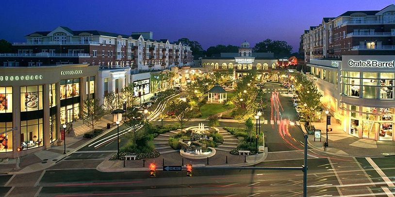 Similar to Clarendon in Arlington, VA: Market Common involved a complex arrangement and integration of different types of housing and retail uses around an energized public square. Image taken from McCaffery website on July 27/22.